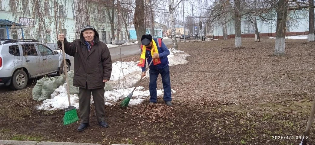 Активисты во главе с Председателем местного отделения Мингазовым Закарией Ильясовичем навели порядок в сквере перед памятником В.И.Ленина, к слову, это один из самых первых памятников, установленных после смерти Ленина. И, по словам многих туристов, это самый необычный памятник вождю.